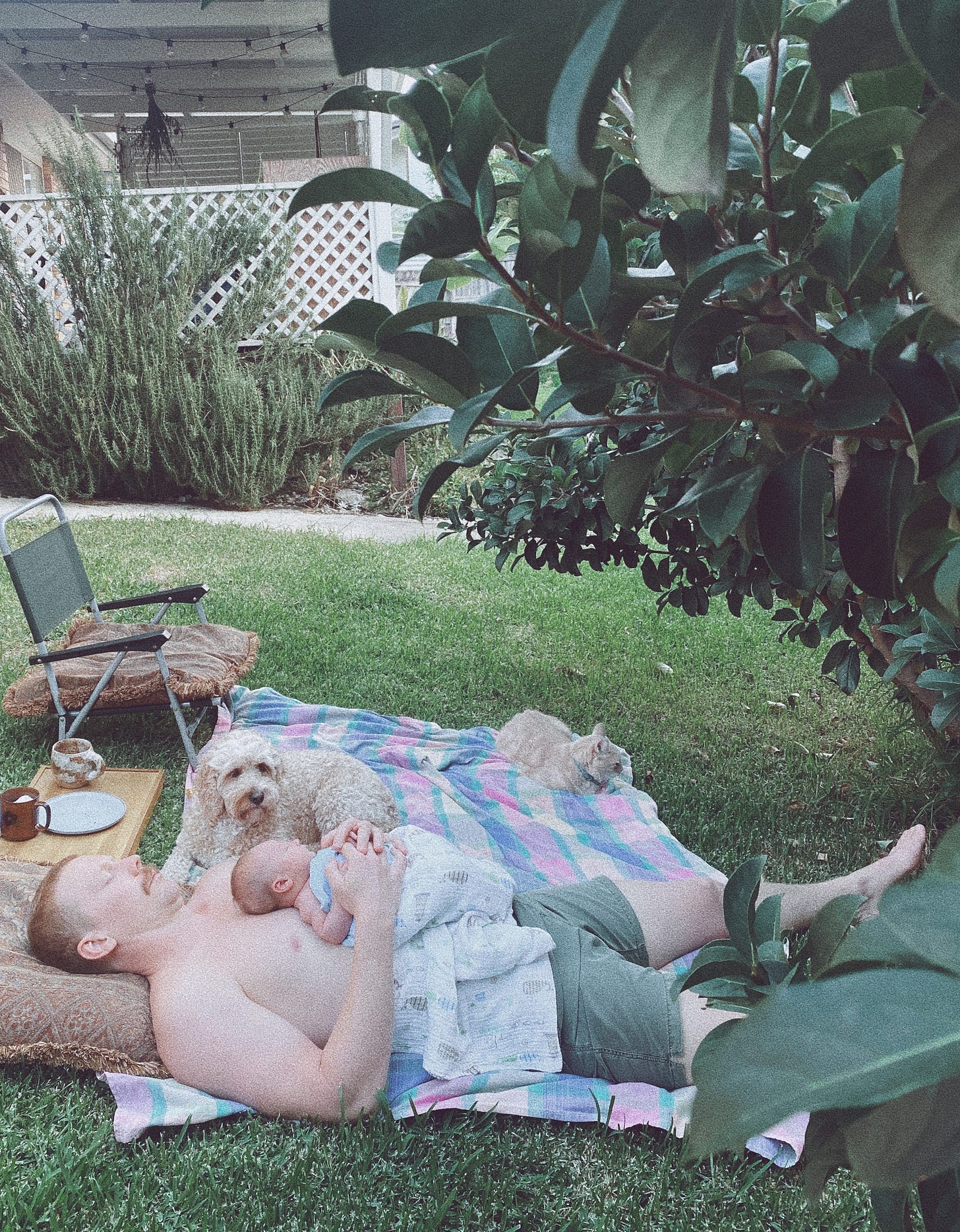 Today we sat in the backyard as a family. Finn and Puss Puss sat beside us, just as much in a trance as we are. No one speaking for some time. We all cuddled and watched the clouds dance in the sky. Wazzy said he could see a baby with an umbilical cord attached to their placenta. I feel us all growing closer. Such a trip this life. I held you while lightly dancing with you in the kitchen today and burst into tears. The happy kind. We stared into each others eyes like we were taking in an old friend we hadn’t seen in a long time. So much to say, not enough paper. In due time…